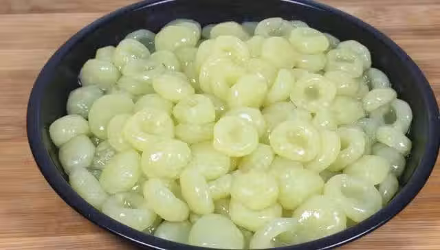 5.再這一下涼水,這樣吃的時候,口感筋道爽滑,土豆窩窩做好後,它的吃法有很多,可以炒菜,可以燉菜,還可以做湯。