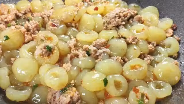 6.那麼今天,分享一個炒菜的吃法。鍋中熱油,油熱下入蔥姜蒜末,炒出香味,下入肉末,加入一勺豆瓣醬,炒出紅油,然後加入料酒 ,生抽,蚝油,十三香,最後加碗清水,下入土豆窩窩,蓋上蓋子開大火燜五鍾,湯汁變濃稠就可以出鍋,盛出放入碗中,撒上蔥花,或香菜末,土豆這樣做,它的口感比土豆粉,還要筋道,爽滑有嚼勁,非常的好吃,還可以一次多做一點,象芋圓一樣,放入冰箱冷凍保存,半年不壞,隨吃隨取,炒菜做湯燉菜,都非常的百搭,真的是好吃。做法也是非常簡單一看就會,如果你喜歡就試一下吧。我是娜姐,如果你喜歡我的食譜,就請關注我吧,每天更新不一樣的美食教學。