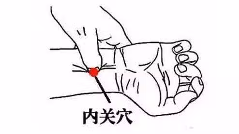 位置:內關穴位於前臂掌側,當曲澤與大陵的連線上,腕橫紋上2寸,掌長肌腱與橈側腕屈肌腱之間(或從近手腕之橫皺紋的中央,往上約三指寬的中央)。