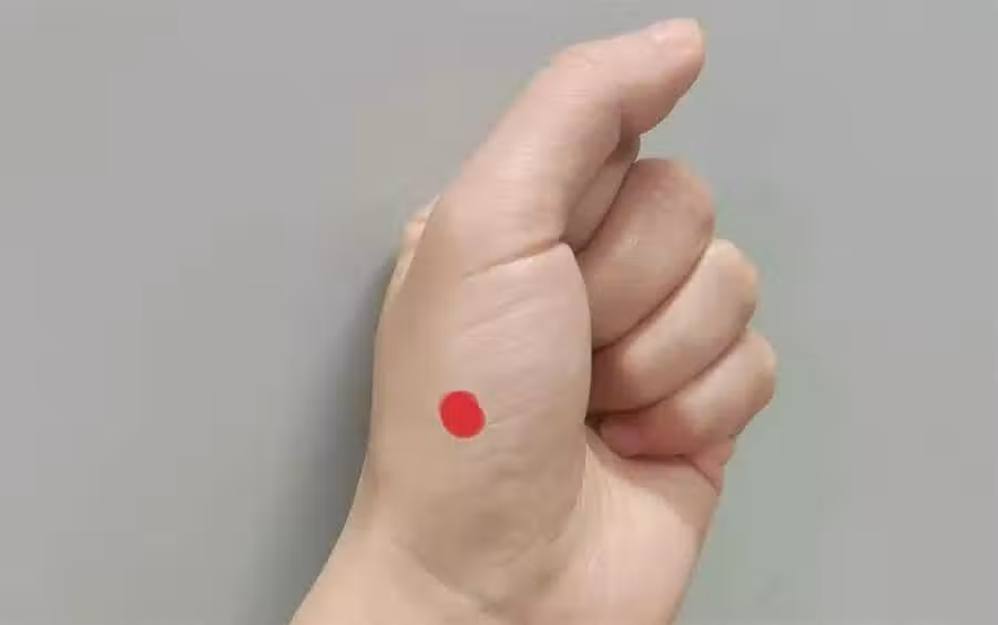 這個穴位就是——魚際穴。 在手拇指本節(第1掌指關節)後凹陷處,約當第1掌骨中點橈側,赤白肉際處。