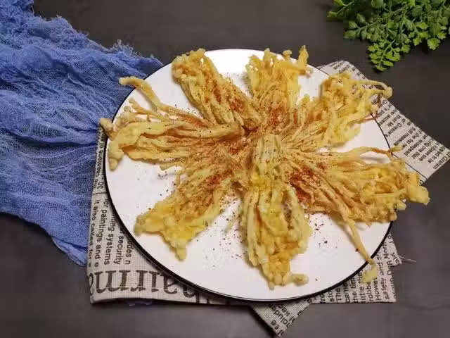 金針菇的做法有很多,平常做得最多的便是清蒸、煮湯或者涼拌,這幾種方式做出來的金針菇口感都比較爽滑勁道。今天我要為大家分享的是另一種烹飪方法——油炸,雖然都說油炸不健康,但誰又能抵擋油炸食物的香酥美味呢?如果最近宅在家的你們,也想吃一點「重口味」的美食來調節一下,這道【椒鹽金針菇】就再適合不過了。金針菇經過油炸後,酥脆不塞牙,出鍋後根據自己的喜好撒上一點椒鹽、辣椒麵或者孜然,真是好吃到無敵。