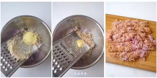 7.剁好後再放入盆中,加入雞蛋、鹽、麵粉。