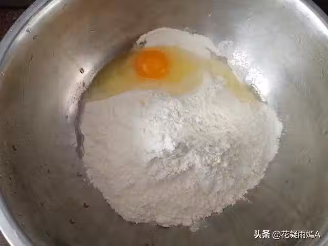 第一步:先把麵粉放入盆中,放入鹽再打入一個雞蛋,我們三口人放了400克麵粉,如果家裡人多,再按比例增加麵粉和水,放雞蛋的話,油條會很酥脆蓬鬆,加鹽的作用是使麵粉增加筋性。