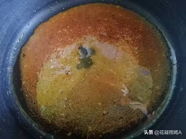 3.煮好的焦糖倒入一個碗里備用,鋪滿碗底就可以,不要倒的太多。