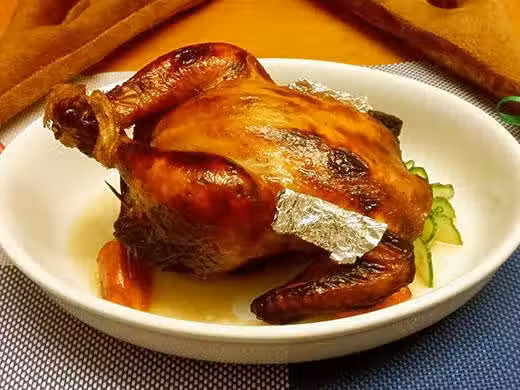 這樣做美味的烤童子雞就做好了,拿出來放在準備好的餐盤上,用小刀切好,就可以和家人一起享受大餐了,每次小便剛做好家人就迫不及待的吃光了,希望大家也喜歡吧!