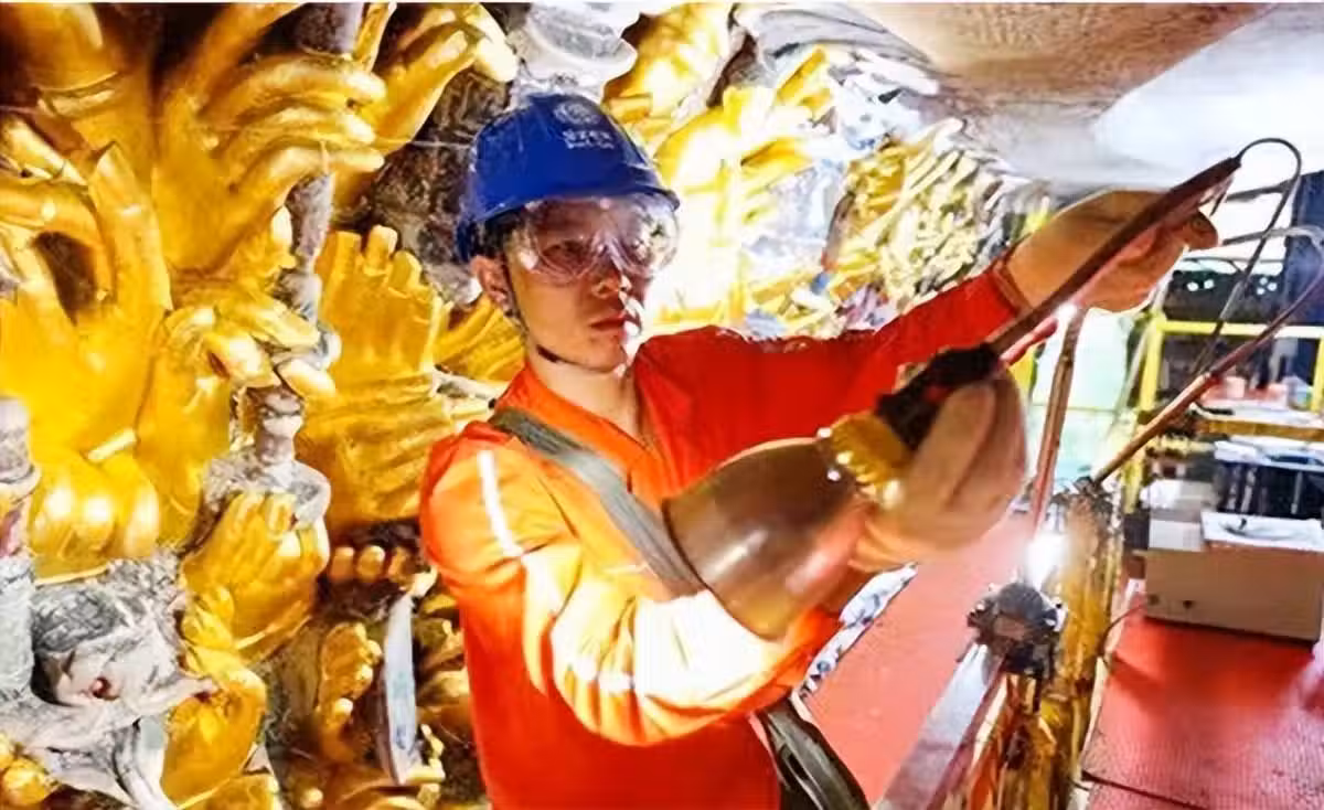 但是對於未知的石像,專家隊伍一時也不知道該如何下手,在正式開始修復工作之前,專家隊伍花費了兩年時間對整個觀音石像進行觀察整理。專家團隊用3d技術對整座佛像進行掃描,發現佛像中的金箔含量極高,大約在80%到93%之間。