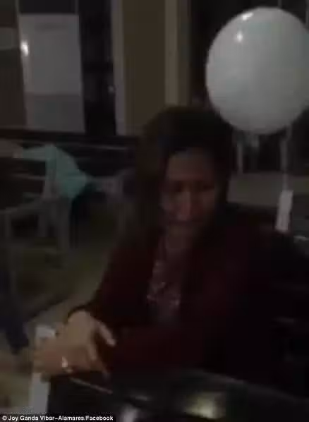 她開始跟著氣球,擁抱它,似乎感受到孩子漂浮在她面前。