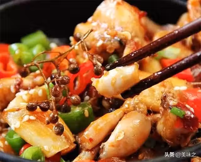 5、倒入牛蛙翻炒斷生,調入醪糟汁。