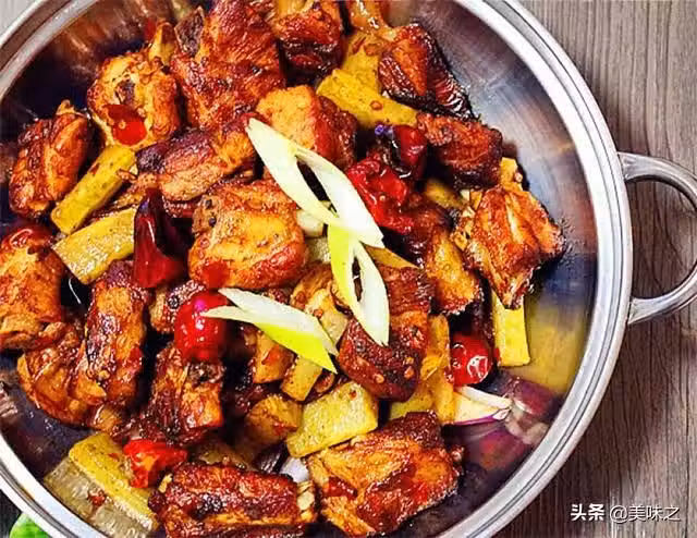 排骨適量、萵筍適量、洋蔥適量、干辣椒適量、姜適量、蒜適量、八角適量、豆瓣醬適量。