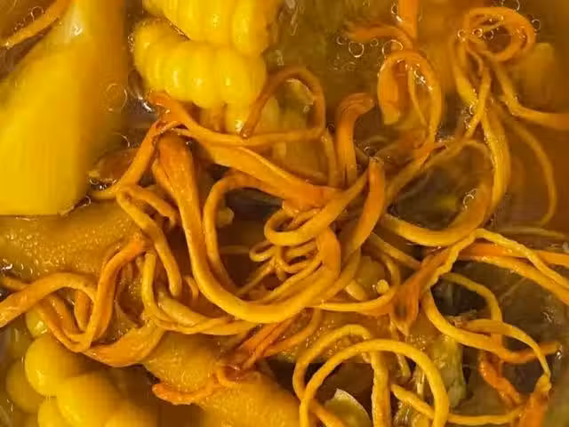 準備食材:蟲草花,淮山,玉米,雞肉,薑片。