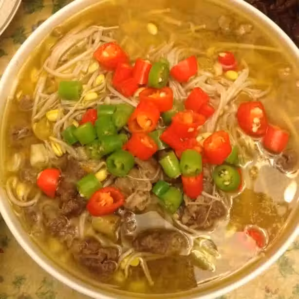 主料:肥牛卷、金針菇、、泡椒、小米椒、黃辣椒、姜、蒜、蔥、鹽、胡椒粉