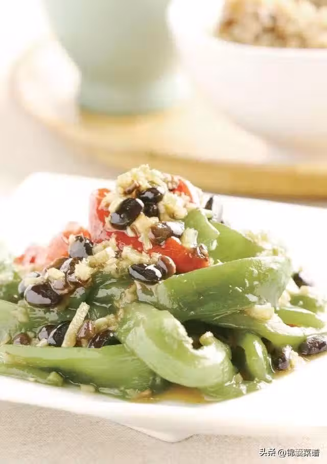 青甜椒 200 克,紅辣椒 60 克,豆豉、薑末各 10 克,水 200 毫升