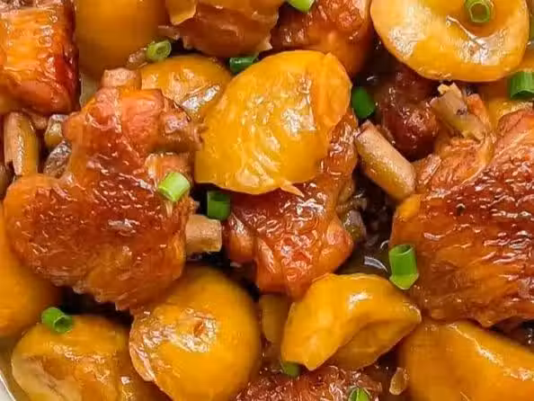 1、雞中翅清洗乾淨,對半剁成兩塊,冷水下鍋焯水,放入薑片和蔥段去腥,煮開後撇掉浮沫後撈起來瀝干水分備用。板栗仁清洗乾淨瀝干水分。