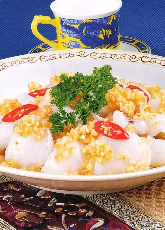 ❶墨魚洗凈,切塊,切成花刀;大蒜去皮洗凈,切末。
