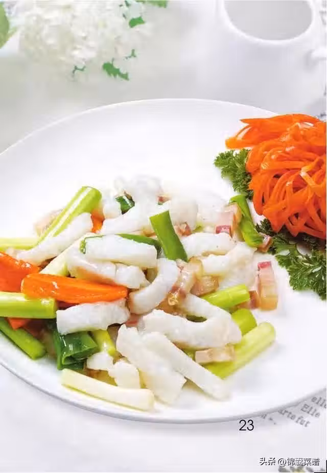 鹽 3 克,胡椒粉 2 克,雞精 4 克,香油、水澱粉、料酒、食用油各適量