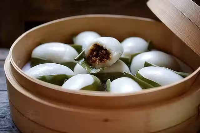 這道小吃必須得用葉子包起來蒸著才好吃,外皮軟糯內餡鮮香特好吃!