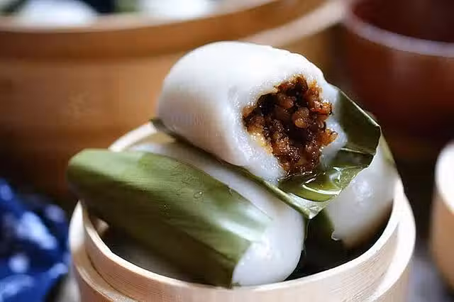 這道小吃必須得用葉子包起來蒸著才好吃,外皮軟糯內餡鮮香特好吃!