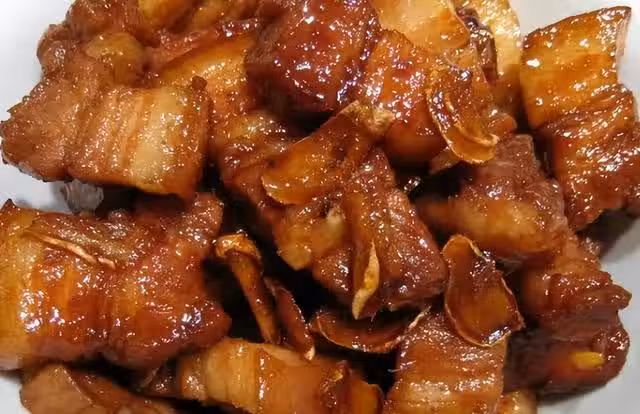 最後,將烤好的蒜蓉五花肉取出,撒上一些香菜葉或蔥花作為裝飾。
