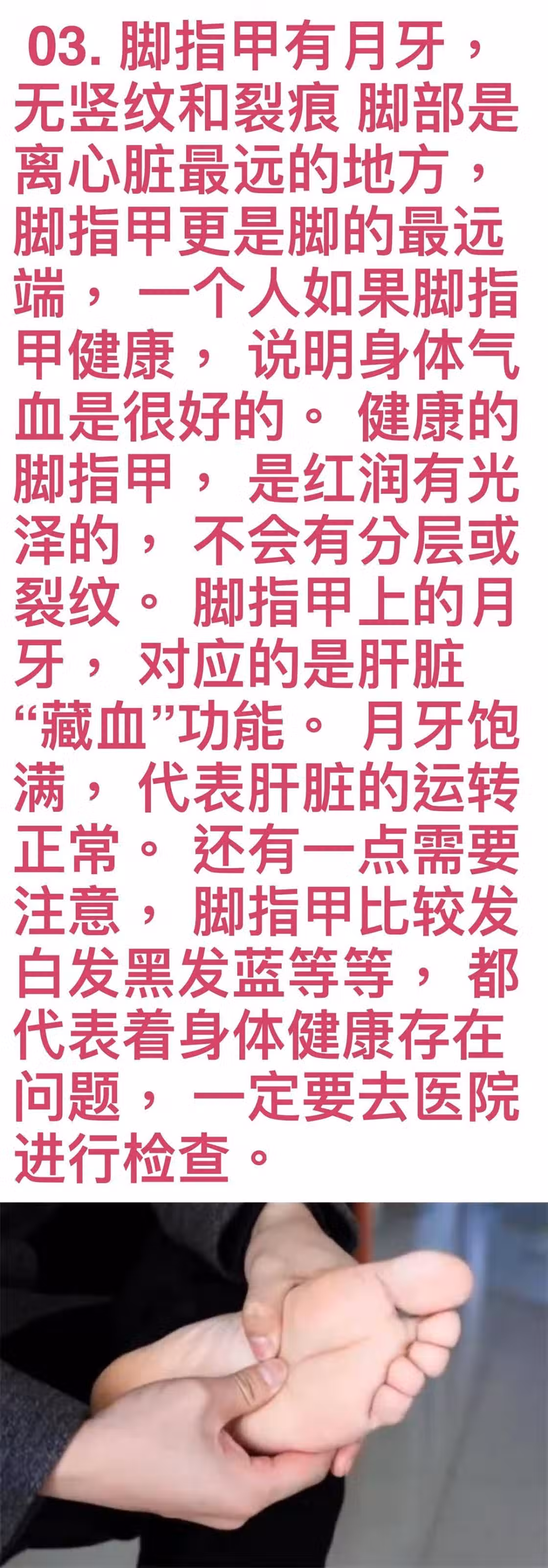 03. 腳指甲有月牙,無豎紋和裂痕