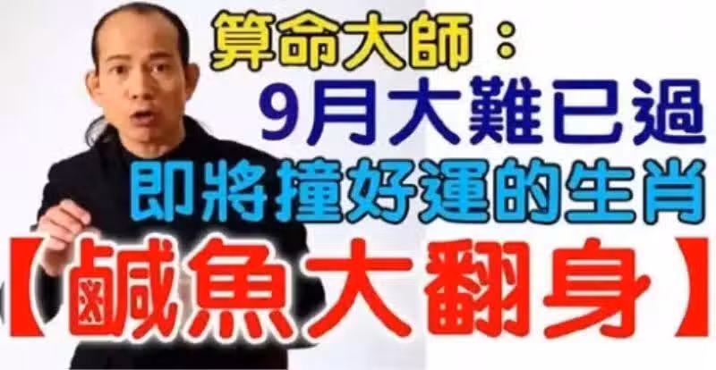 俗話說:人無橫財不富,馬無夜草不肥!的確如此,當一個人僅僅憑藉自己正常的工作收入去買房買車,除非他的正財收入驚人! 否則當下,普通百姓的工作收入去衡量房價是非常微不足道的,每個人的暴富都離不開偏財的降臨,那麼接下來這6大生肖他們可就有福了,算命大師:9月大難已過,即將撞好運的生肖,鹹魚大翻身!