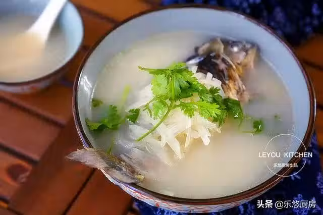 第二步:鯽魚清洗乾淨,尤其是肚子裡的那層黑膜,一定要完全去掉,然後沖洗幾遍,再用廚房紙巾擦乾表面水分備用。白蘿蔔去皮切成絲,姜切片,大蔥切段備用。