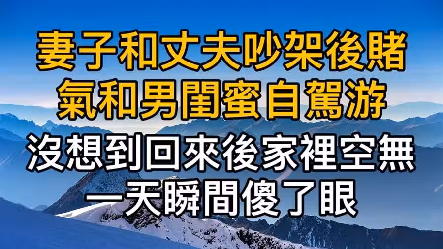 人妻不聽勸和男閨蜜自駕遊15天,丈夫說就「讓妳玩個夠」回家打開門「癱坐在地」「親走葬送婚姻」:家沒了!
