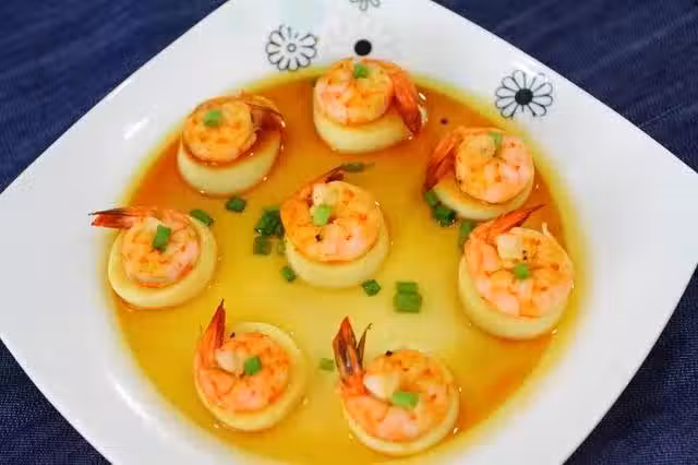 1、蝦仁腌制過後和豆腐一起蒸,吃起來更加入味,鹽的量不宜過多