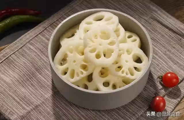 1、蓮藕去皮後切成薄片,依據個人經驗,蓮藕切的越薄口感越好,切好之後,清洗掉蓮藕上的澱粉,然後放在清水中浸泡,清水中可以加入食鹽和白醋。
