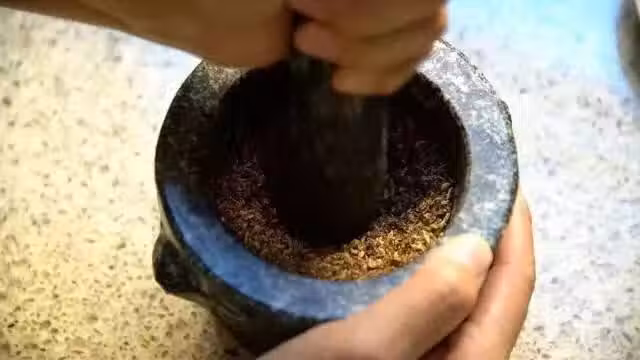 3.海鮮醬與蜂蜜 2:1 混合均勻,將搗好的香料粉倒入醬料中,攪拌均勻