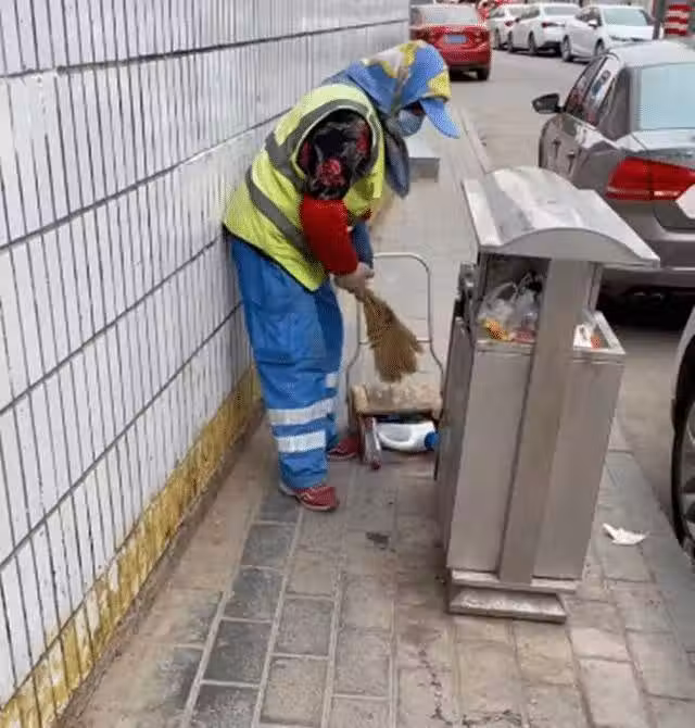 受到幫助的環衛阿姨不禁感動地落下了滾燙的淚珠,