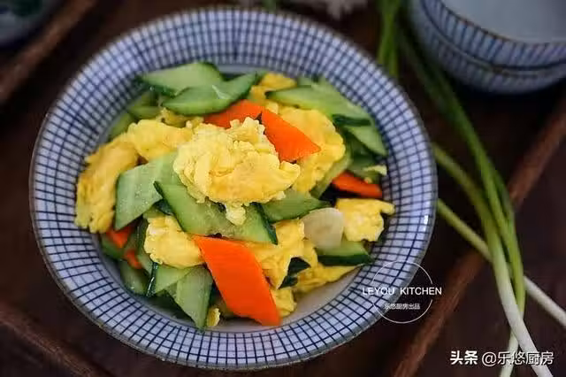 第一步:準備食材。雞蛋4個、黃瓜2根、胡蘿蔔半根、蒜適量。