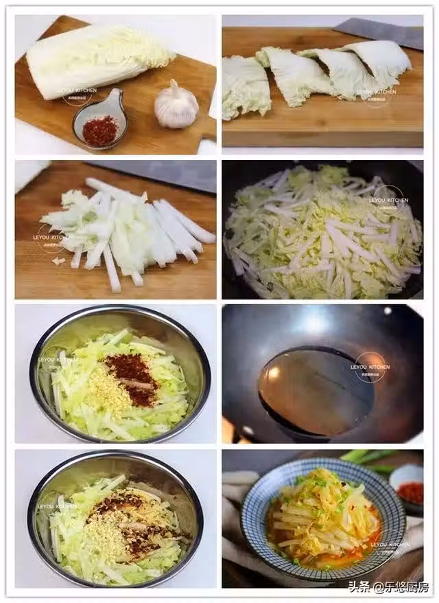 2、做這道菜的關鍵就是那勺熱油。所以,油一定要燒到冒煙,這樣澆在干辣椒粉和蒜末上,味道才會足。