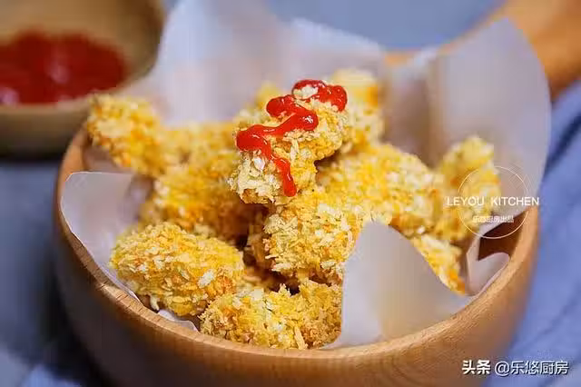 第五步:將粘好乾澱粉的雞肉放入蛋液中,粘滿雞蛋液。