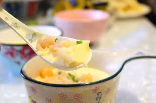 這次我用乾貝做了嫩蛋羹。嫩滑如鏡的嫩蛋羹中加了泡發乾貝的水,只用鹽調味就已經特別鮮美了。泡發的乾貝撕碎了灑在蛋羹表面再略蒸三五分鐘,拿出來就可以開吃了。相信我,除了一點點鹽,別的調料什麼都不必加,不用味精雞精,不必澆生抽蚝油,乾貝和泡發乾貝時的水,就是天然的提鮮劑,又鮮又燙的嫩蛋羹端上桌,來不及等它的溫度降下來就挖一勺開始吃,恨不得把舌頭都吞下去。