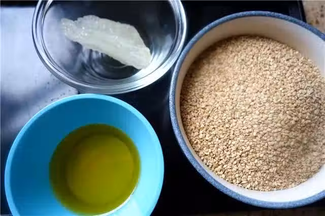 2.將芝麻洗凈,濾干水份,放入不粘鍋里炒熟。(全程小火,炒至微微變色,就好了,別炒過了,吃起來會有種苦味)