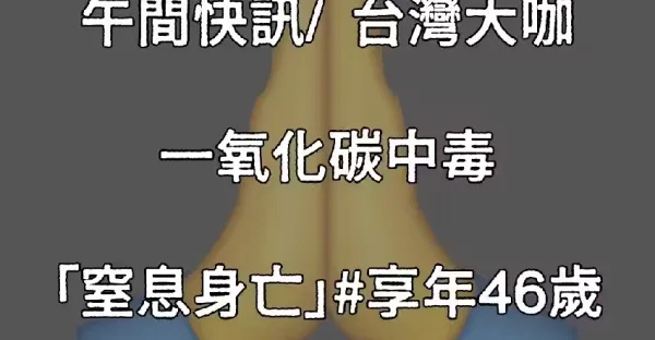 午間快訊/ 台灣大咖 一氧化碳中毒「窒息身亡」 #享年46歲!