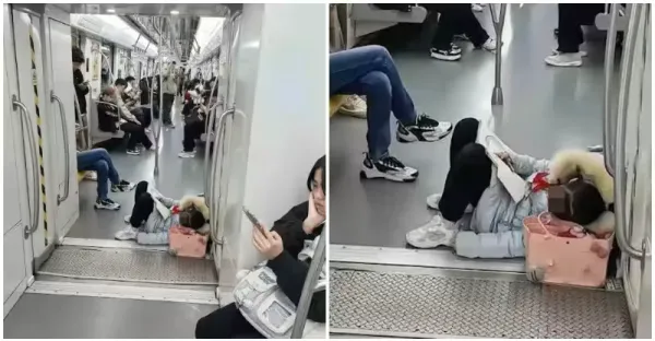撐不住了!小女孩「直接在車廂地板」呼呼大睡 近看「手緊握1物品」網鼻酸:悲哀的社會