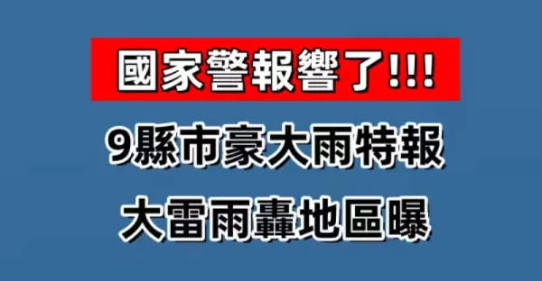 快訊/國家警報響了!!!9縣市豪大雨特報 大雷雨轟地區曝