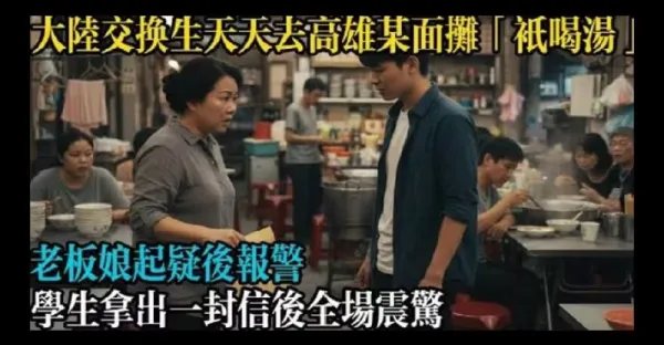 大陸交換生天天去高雄某麵攤「只喝湯」 老闆娘起疑後報警, 學生拿出一封信後全場震驚