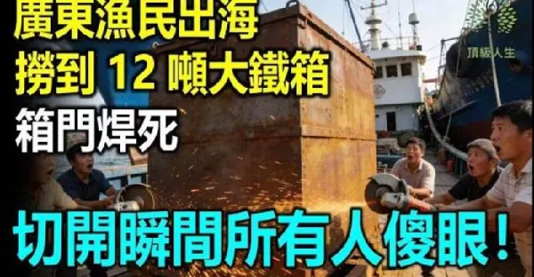廣東漁民出海撈到12噸大鐵箱,箱門焊死!切開瞬間所有人傻眼了