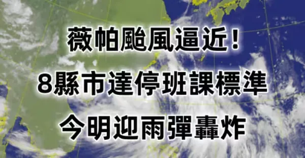 快訊/薇帕颱風逼近!8縣市達停班課標準 今明迎雨彈轟炸