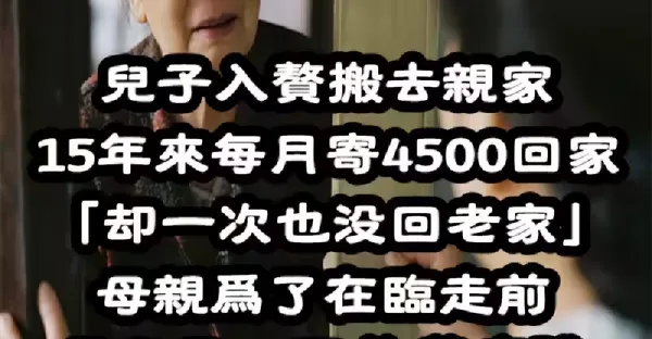 兒子入贅搬去親家!15年來每月寄4500回家「卻一次也沒回老家」...母親為了在臨走前見兒子一面,拖著病.體上門探望「敲開門她淚如雨下」