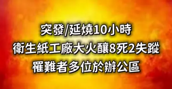 突發/延燒10小時 衛生紙工廠大火釀8死2失蹤 罹難者多位於辦公區!!