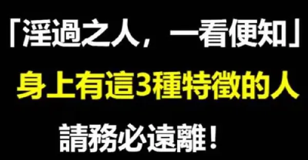 「淫過之人,一看便知」,身上有這3種特徵的人,請務必遠離