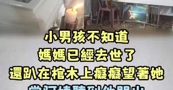 小男孩不知道媽媽已經去世,還趴在棺木上痴痴望著她,當阿姨聽到他問出「這一個問題」心臟都裂開了…