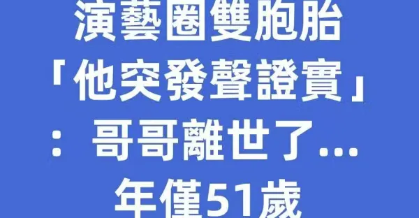 悲慟!演藝圈雙胞胎「他突發聲證實」:哥哥離世了... 年僅51歲「後事已結束!」