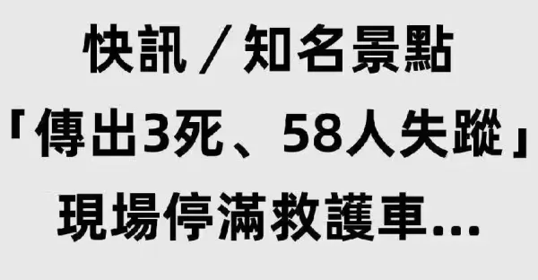 快訊/知名景點「傳出3死、58人失蹤」! 現場停滿救護車...