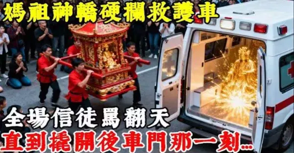 媽祖神轎硬攔救護車!!全場信徒罵翻天,直到撬開後車門那一刻...所有人跪了!