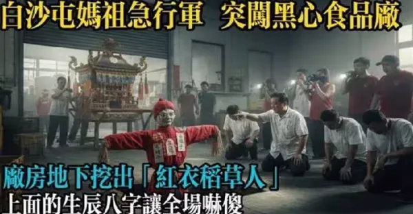 白沙屯媽祖急行軍,突闖黑心食品廠,廠房地下挖出「紅衣稻草人」上面的生辰八字讓全場嚇傻