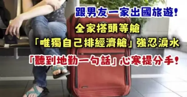 跟男友一家出國旅遊!男子全家搭頭等艙「唯獨自己排經濟艙」 強忍淚水「聽到地勤一句話」心寒提分手!!